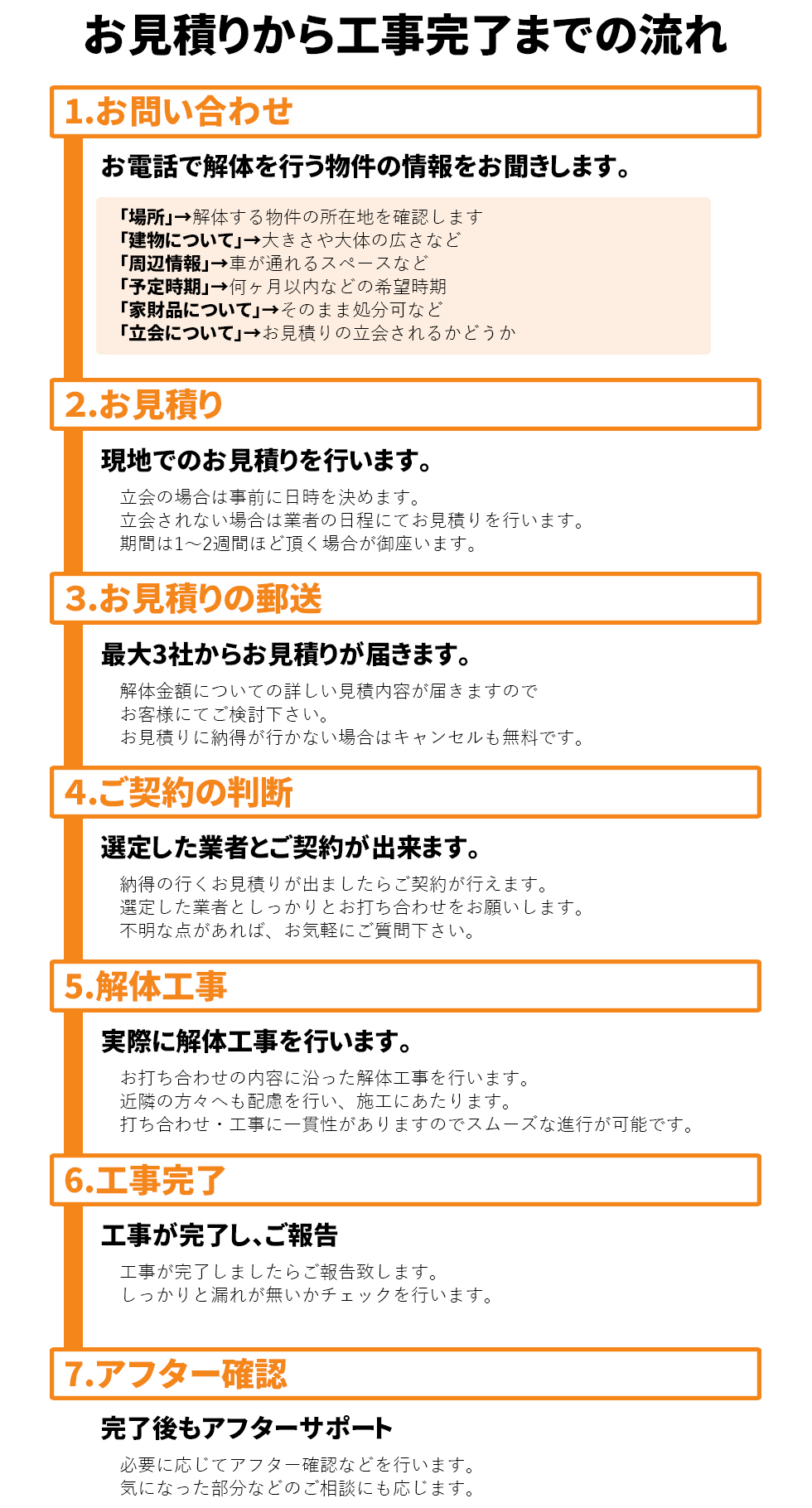 家の取り壊し、解体に必要な手続きに関しては担当する業者からご説明させて頂きます。